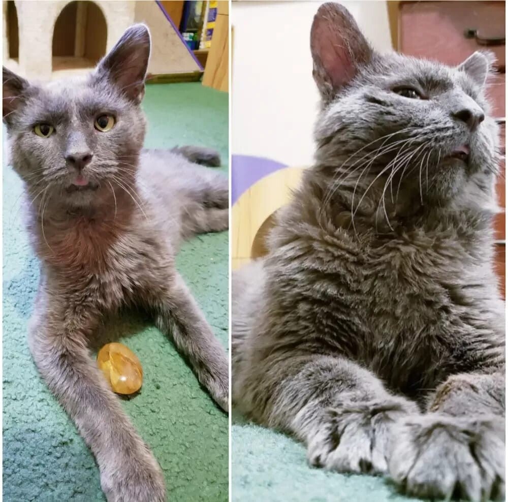 Lorsque les chats contractent l'une de ces maladies, ils souffrent terriblement. Mais ce n'est pas seulement le chat qui a la maladie qui souffre. S'ils ont une maladie et qu'on leur permet d'avoir des bébés parce qu'ils n'ont pas été stérilisés, les bébés souffrent alors également de différentes manières. Ils peuvent naître avec la maladie elle-même, mourir avant la naissance, ou ils peuvent naître avec des handicaps, des malformations ou un sous-développement. Dans le cas de l'un des chats de notre centre, il est né avec une affection appelée ataxie due à une hypoplasie cérébelleuse. C'est un problème de leur équilibre, causé parce qu'une partie de leur cerveau appelée le cervelet, une partie de leur cerveau qui contrôle l'équilibre, ne s'est pas développée correctement lorsqu'il était dans le ventre de sa mère parce qu'elle était malade (cru que ce soit de la panleucopénie). Il existe différents niveaux de gravité pour cette condition. Mais tous auront besoin de soins spéciaux à vie et d'adaptations dans le domicile pour eux.